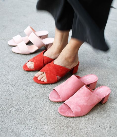 O modelo com os calcanhares abertos regressou. Típico dos anos 90, há versões com salto e outras totalmente rasas, além das cores e materiais variarem muito. As mais presentes tem salto em tacão e são uma óptima opção para uma saída noturna.
