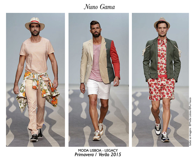 O trabalho de Nuno Gama continua a ter a ênfase no corte e silhueta masculina. Para esta estação acrescenta-lhe alguns padrões florais e primaveris como papoilas e laranjeiras, nós naúticos e âncoras. Das várias tonalidades usadas, os laranjas, verdes e azuis ressaltam por serem inspirados na Arrábida: sítio onde passou a sua infância. A coleção parte das suas primeiras memórias e vai crescendo de forma mais descontraída, divertida e informal.