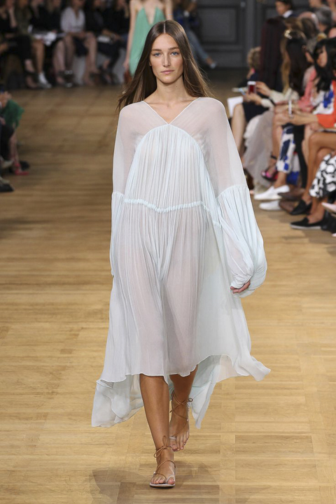 As camisas de algodão bordadas, com mangas mais volumosas e pregadas, e laços brancos no colarinho, são alguns dos exemplos mais fáceis de caracterizar a elegância que nos remete, automaticamente, para este período do séc. XIX. Os vestidos brancos compridos com golas subidas e de decotes mais fechados e redondos são a peça principal que mais aparece neste verão.