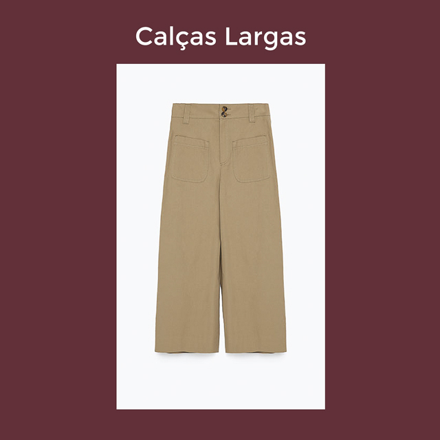 As skinny jeans começam, lentamente, a perder o domínio no campo das calças. A largura e o volume voltam a afirmar-se e, em vários modelos: nas calças flare (ou calças à boca de sino); calças cullote (largas e pela altura do joelho) e calças de alfaiate, com pinças e mais estruturadas.